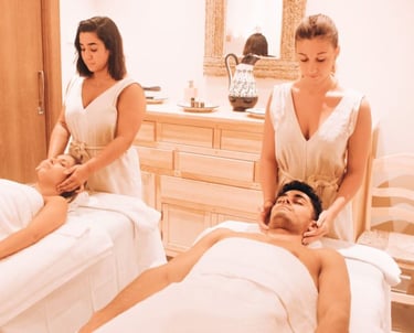 Cualquier técnica de masaje a elegir Dos terapeutas trabajan de forma sincronizada para inducir una relajación profunda y multisensorial.